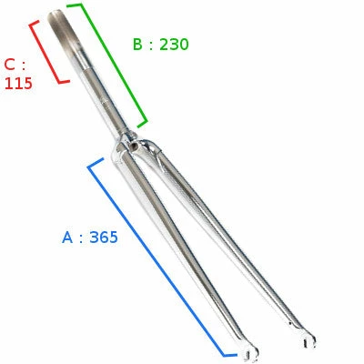 La fourche BLB Classic est compatible avec les roues avant de 700 mm ou 28 pouces de diamètre. Son jambage mesure 365 mm. Le pivot de la fourche mesure 230 mm et est fileté sur une longueur de 115 mm. La fourche possède un diamètre de 1 pouce et elle est compatible avec les potences plongeur. Pour finir l’installation il vous faudra un jeu de direction 1 pouce, tel ce jeu de direction chromé pour pouvoir tourner avec précision.