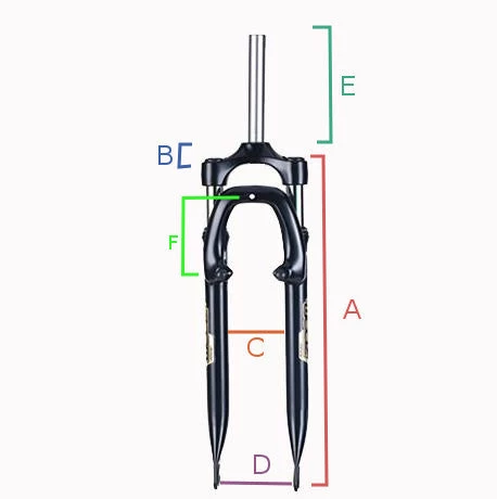 | Fourche suspendue 26 pouces | 460 mm | 30 mm | 90 mm | 100 mm | 290 mm | 117 mm |